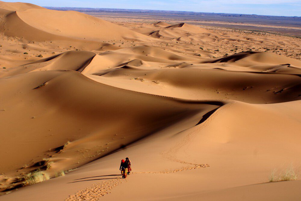 Wüstentrekking in Marokko. Dieses Abenteuer gibt es in zwei neuen Varianten – komfortabel sind dank des Gepäcktransports beide. Die etwas einfachere 2-Stiefel-Tour bringt Wüstenfans ins Draa- und Dades-Tal und zu den beeindruckendsten Dünen im Erg Chebbi. Ambitionierte Trekker nehmen die anspruchsvollere 2-3-Stiefel-Route – inklusive Querung des Hohen Atlas und spektakulärem Flusstrekking in der Mgoun-Schlucht.